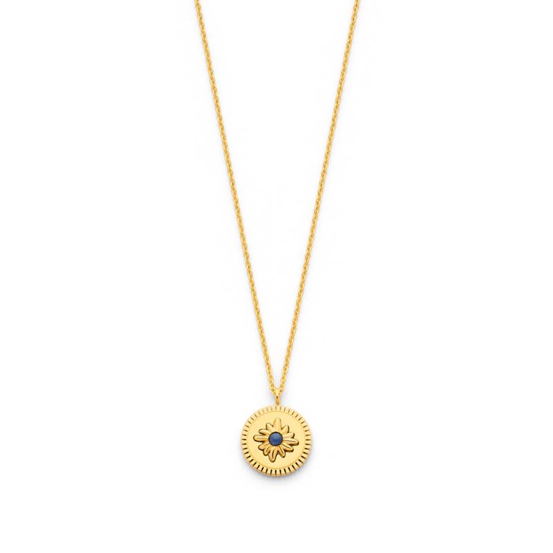 Collier acier doré avec aventurine bleue réglable de 40 à 45 cm