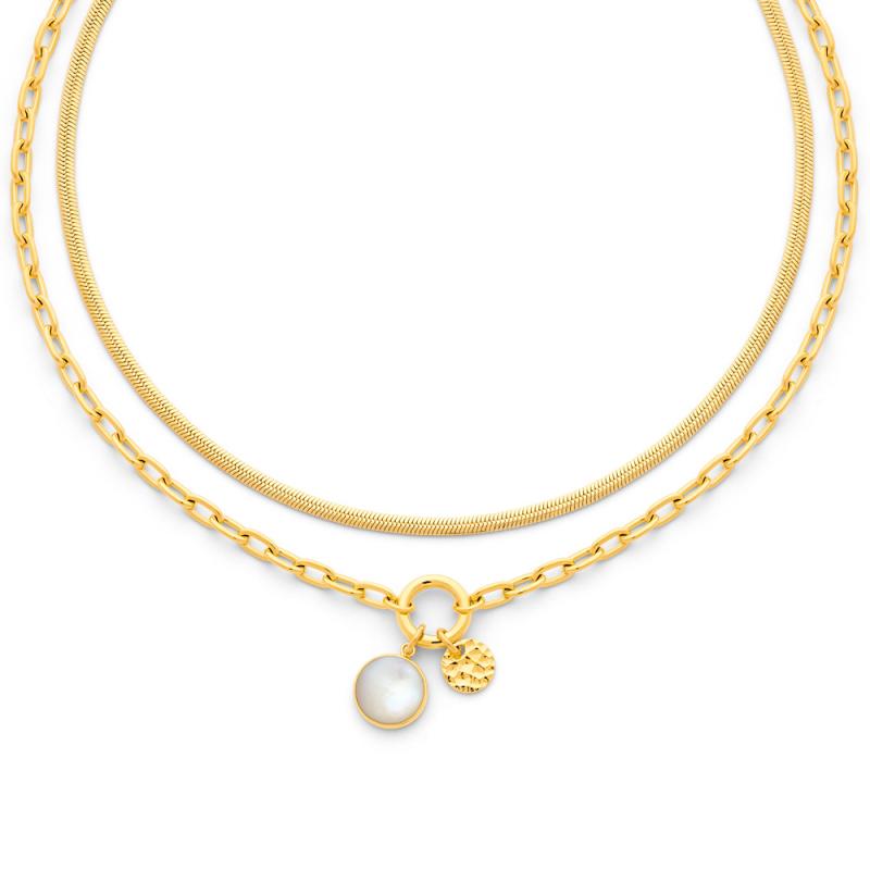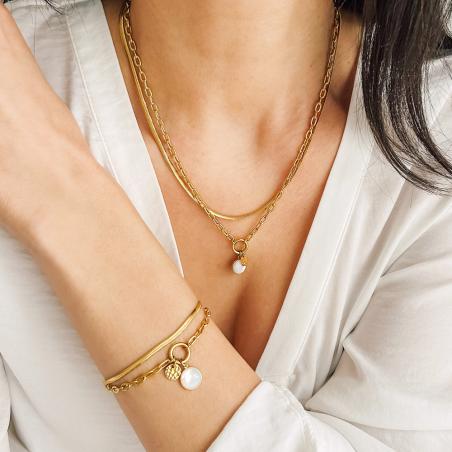 Collier double acier doré avec nacre réglable de 45 à 50 cm