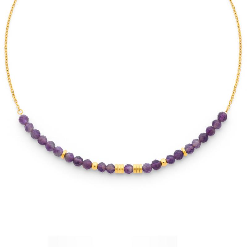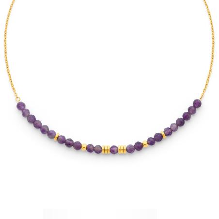 Collier acier doré avec améthyste réglable de 40 à 45 cm