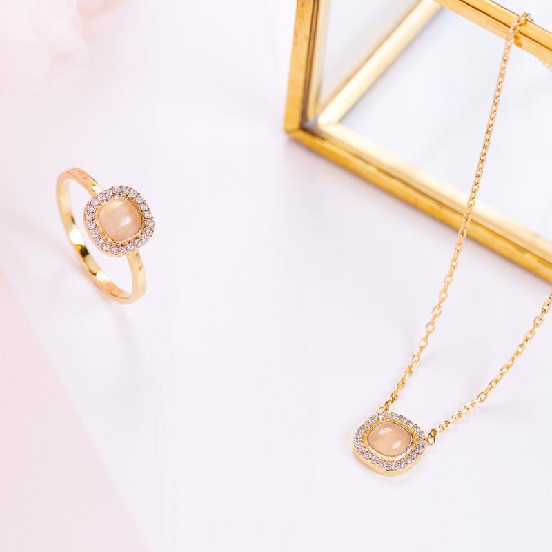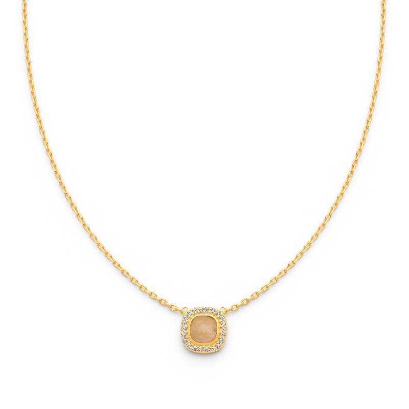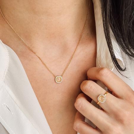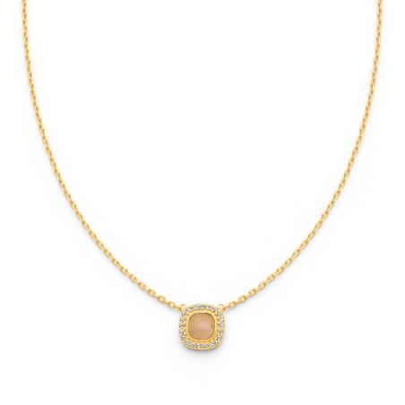 Collier doré avec zirconias et quartz rose réglable de 40 à 45 cm