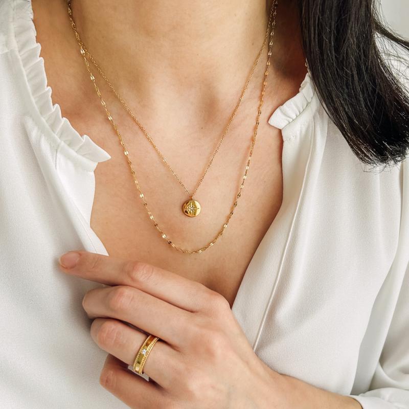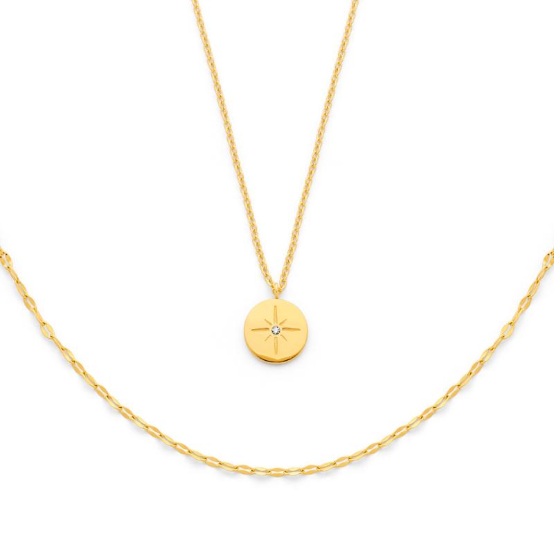Collier acier doré avec zirconia réglable de 40 à 45 cm