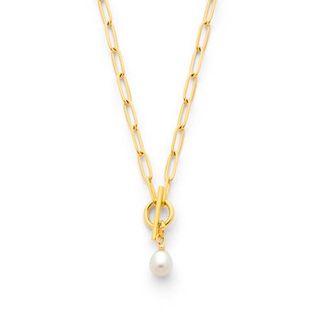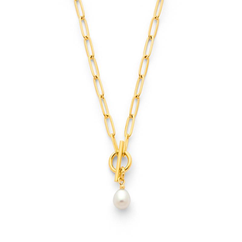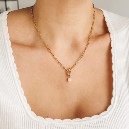 Collier acier doré avec perle de culture réglable de 40 à 45 cm