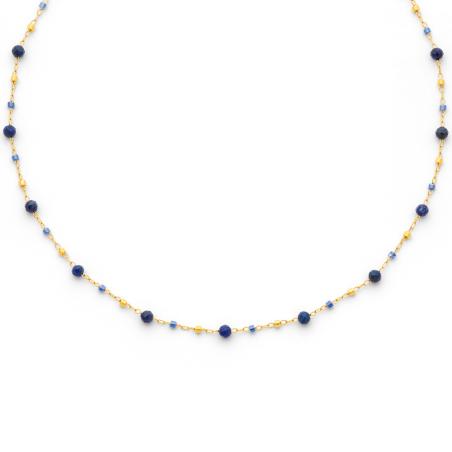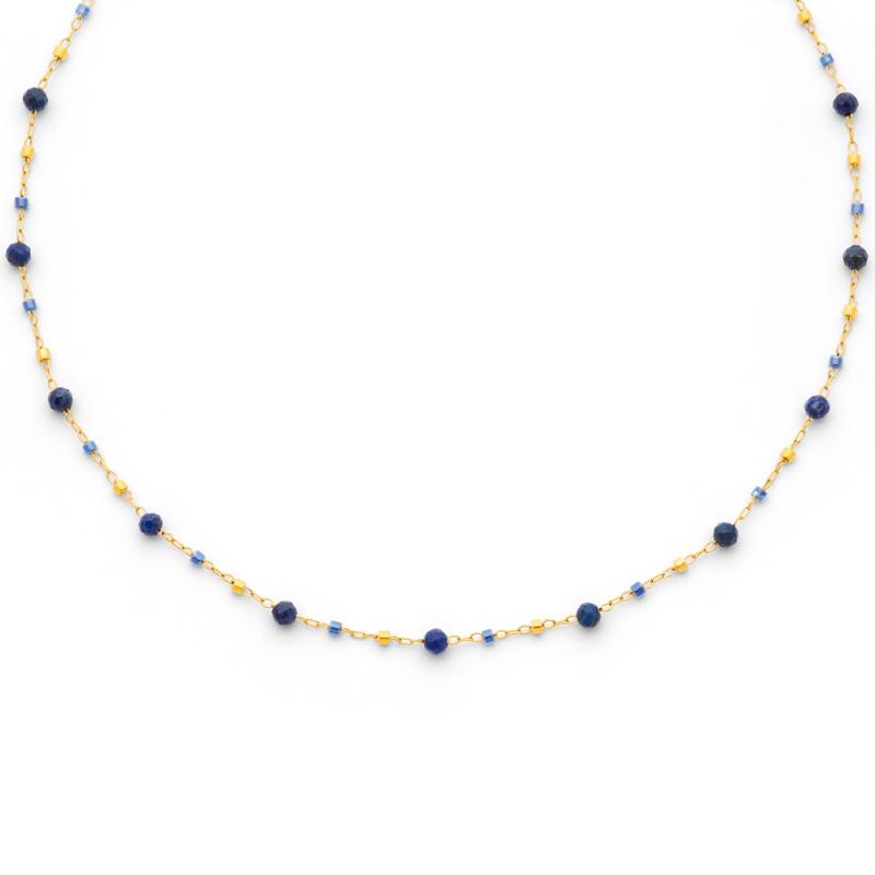 Collier acier doré avec lapis lazuli et miyuki réglable de 40 à 45 cm