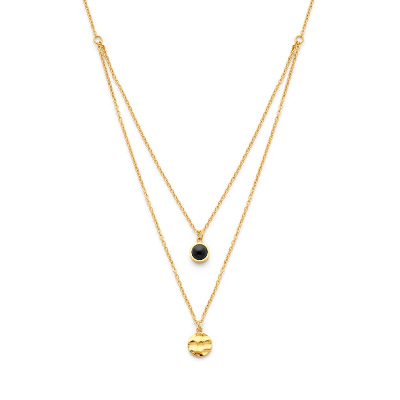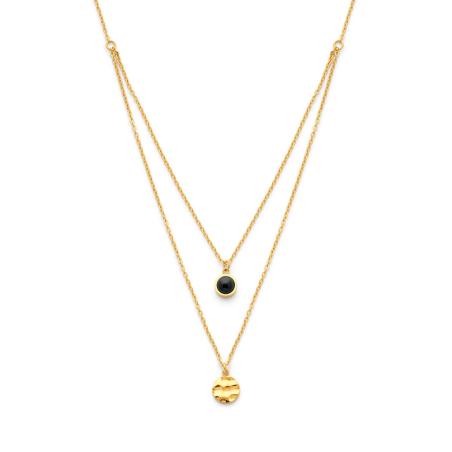 Collier acier doré avec agate noire réglable de 40 à 45 cm