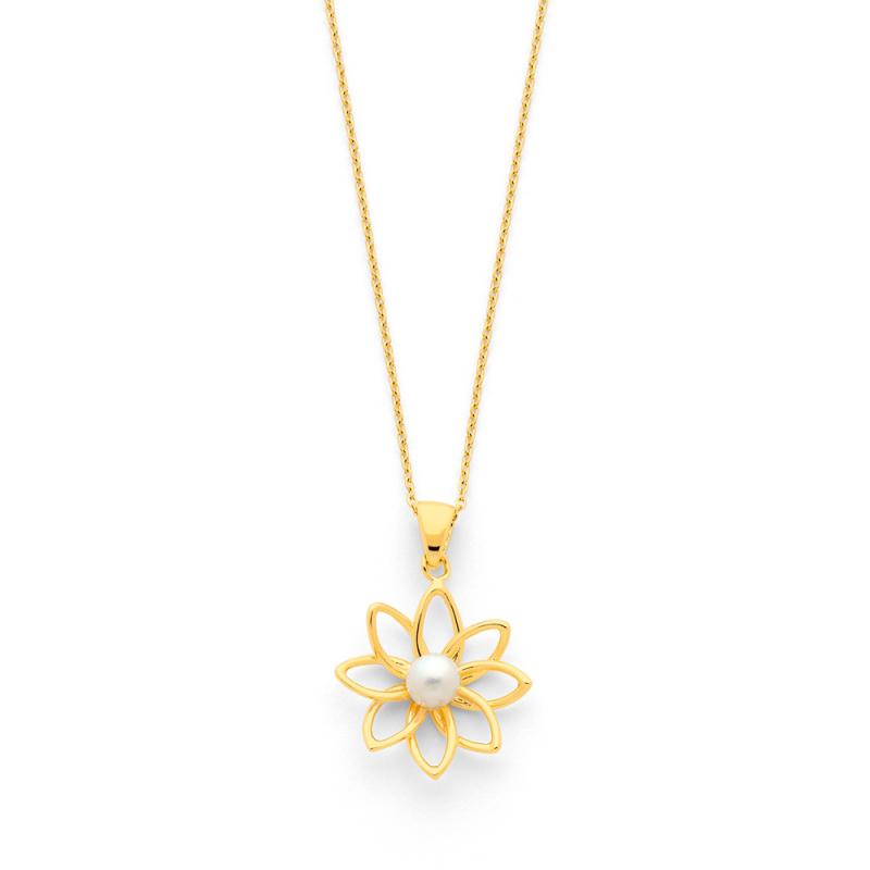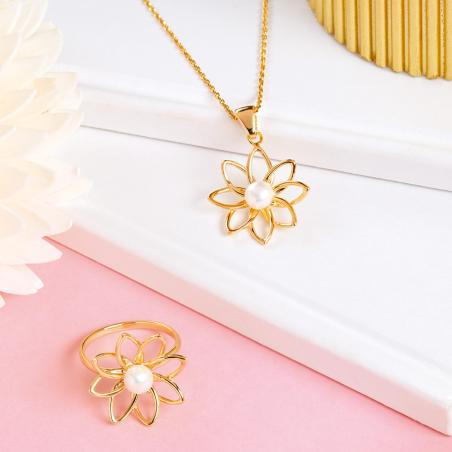 Collier acier doré avec perle de culture réglable 45 à 50 cm