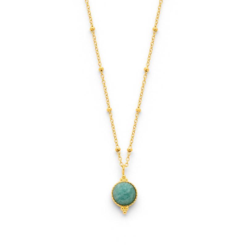 Collier acier doré avec amazonite réglable de 40 à 45 cm