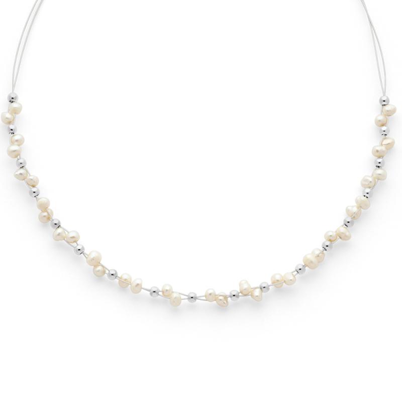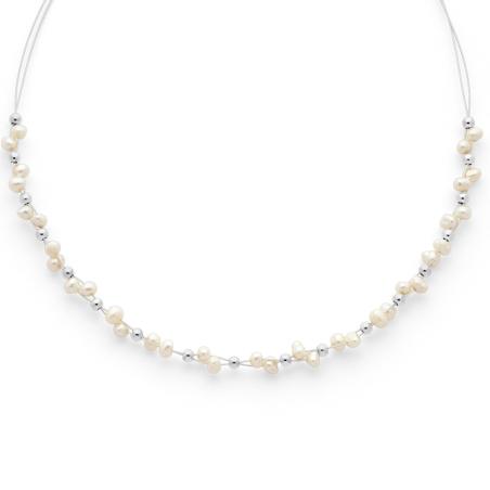 Collier acier avec perles de culture d'eau douce réglable de 40 à 45