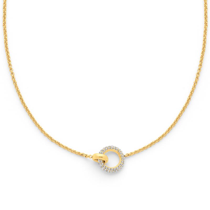 Collier acier doré avec cristal réglable de 40 à 45 cm