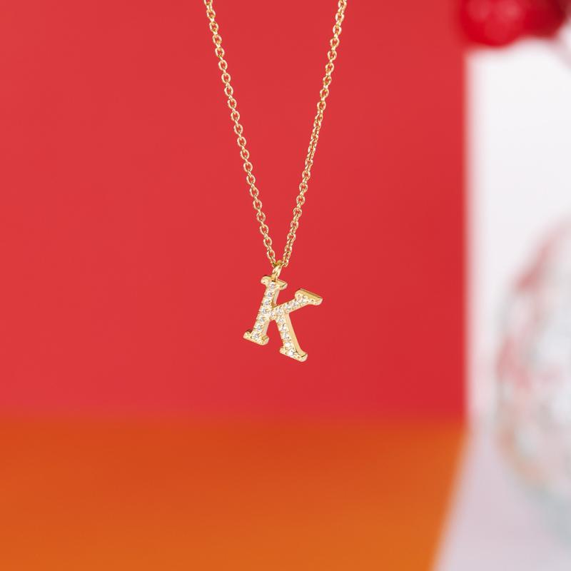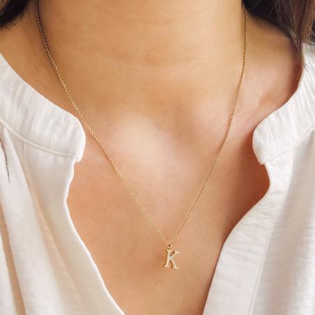 Collier initiale acier doré avec zirconias réglable de 40 à 45 cm