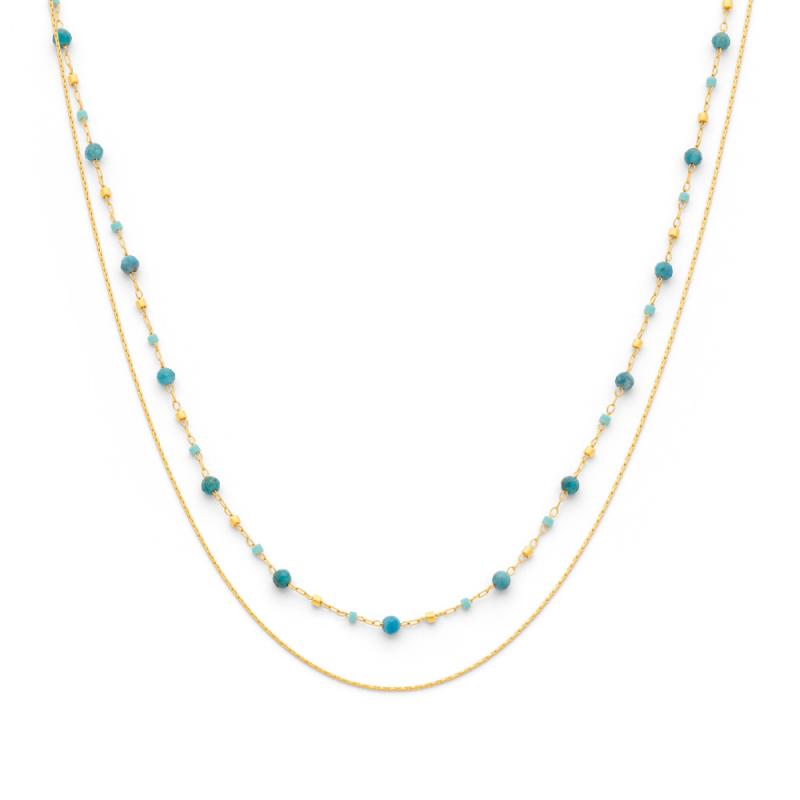 Collier double acier doré avec apatite, miyuki réglable de 40 à 45 cm