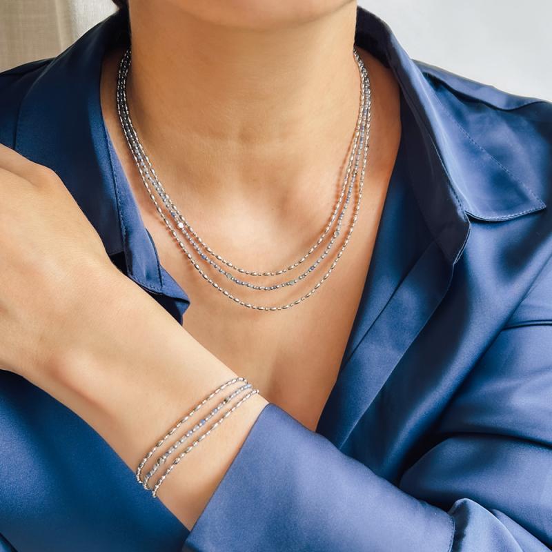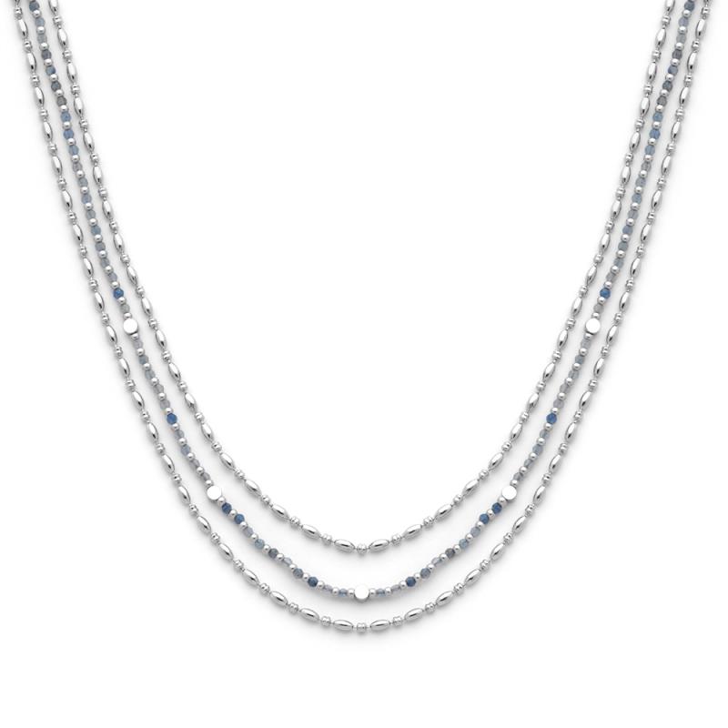 Collier triple acier avec aventurine bleue réglable de 38 à 43 cm