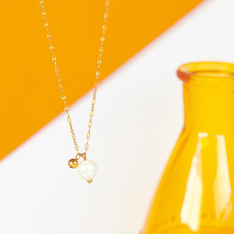 Collier acier doré avec nacre réglable de 40 à 45 cm
