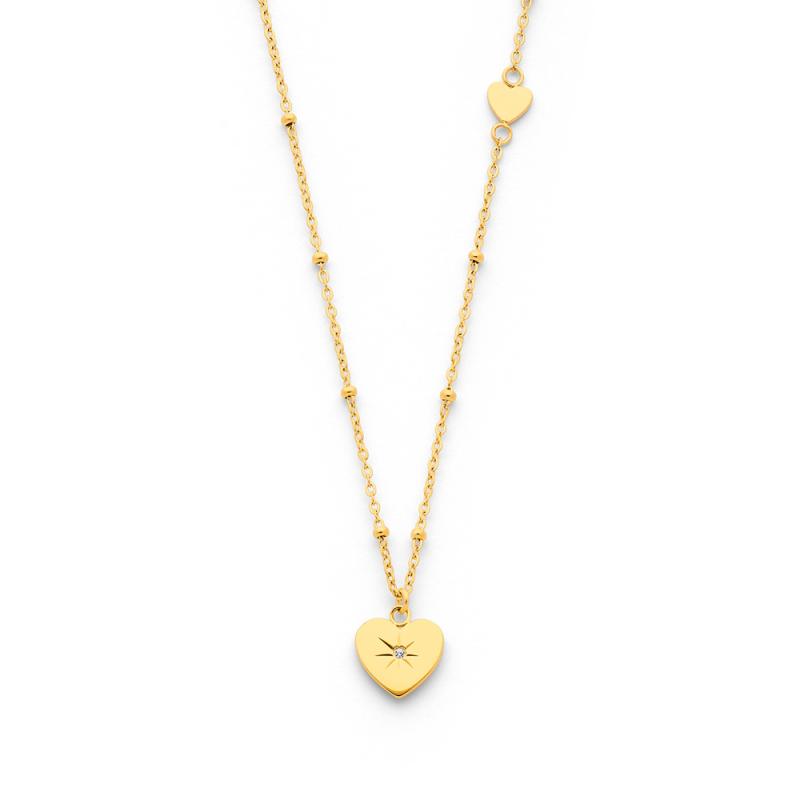 Collier acier doré avec zirconia réglable de 40 à 45 cm