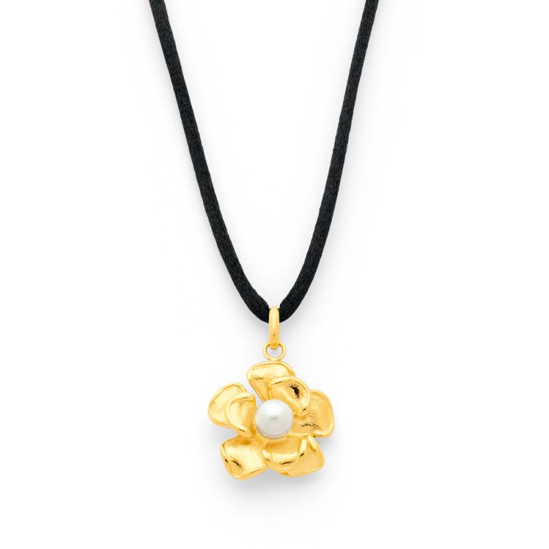 Collier acier doré avec nacre et cordon réglable de 40 à 45 cm