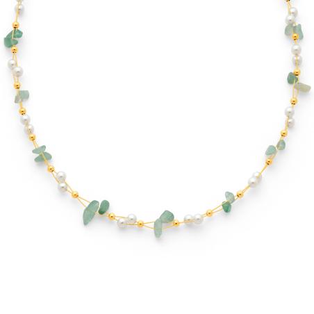 Collier acier doré avec aventurine et nacre réglable de 40 à 45 cm