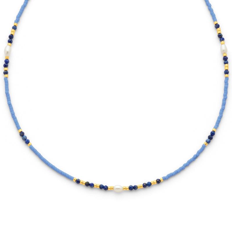 Collier acier doré lapis-lazulli,miyuki, perle réglable de 40 à 45cm