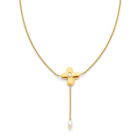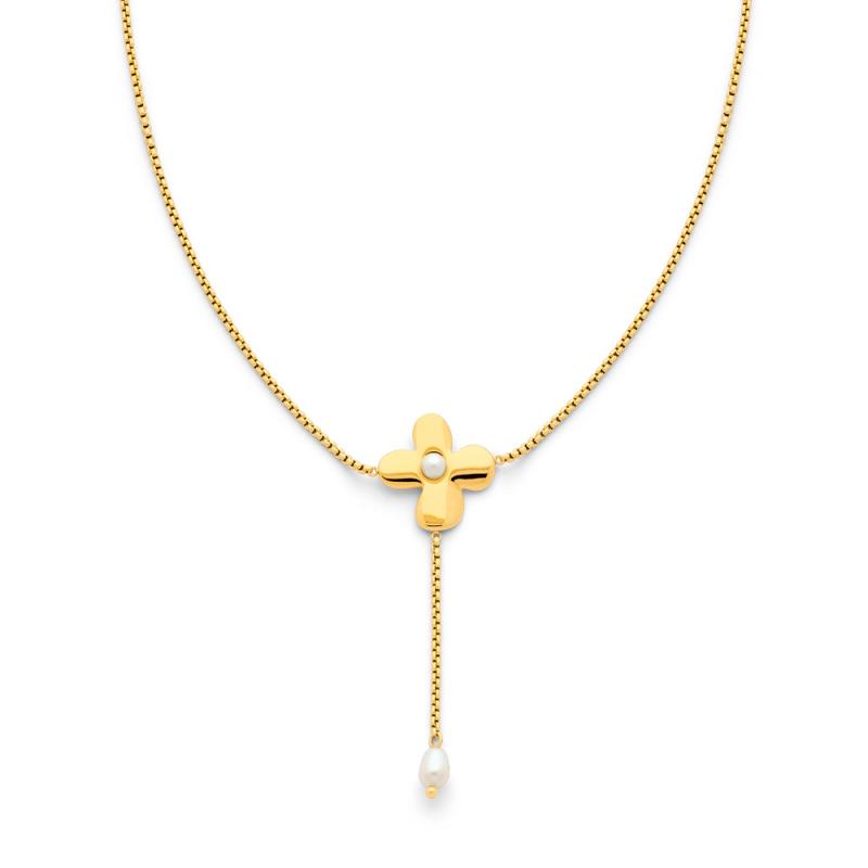 Collier acier doré avec perle de culture réglable de 40 à 45 cm