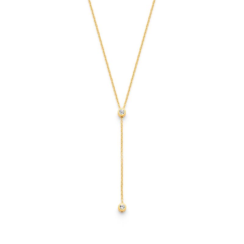 Collier acier doré avec cristal réglable de 40 à 45 cm