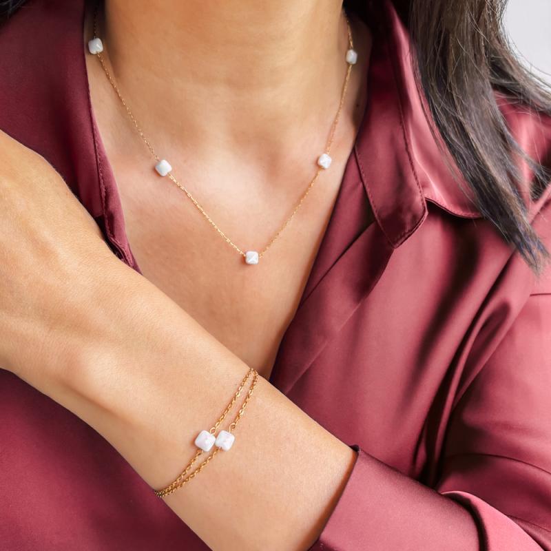 Collier acier doré avec verre teinté réglable de 42 à 47 cm