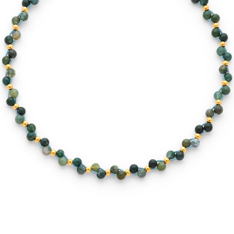 Collier acier doré avec agate mousse réglable de 42 à 45 cm
