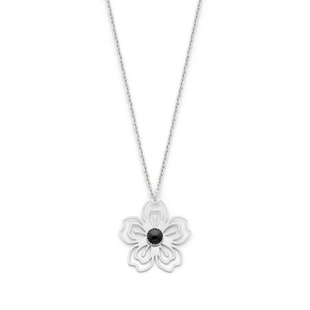 Collier acier avec agate noire réglable de 42 à 47 cm