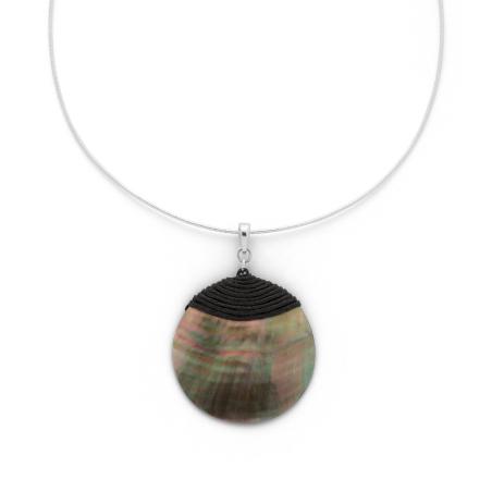 Collier argent avec nacre grise 42 cm
