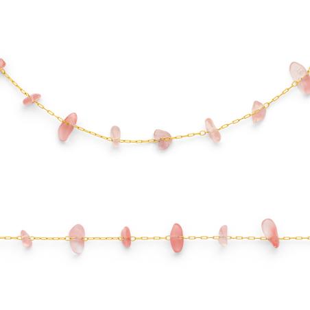 Ensemble collier et bracelet acier doré avec quartz rose