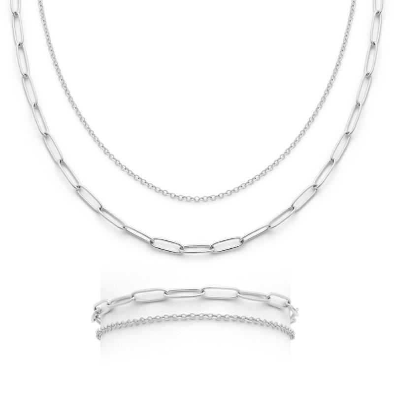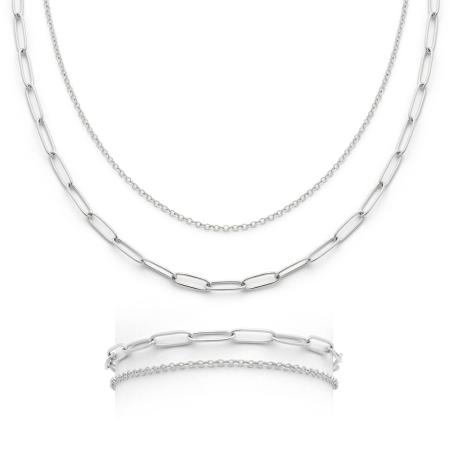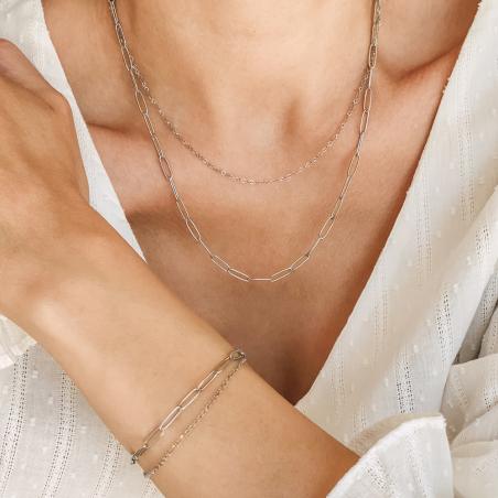 Ensemble collier double et bracelet double acier