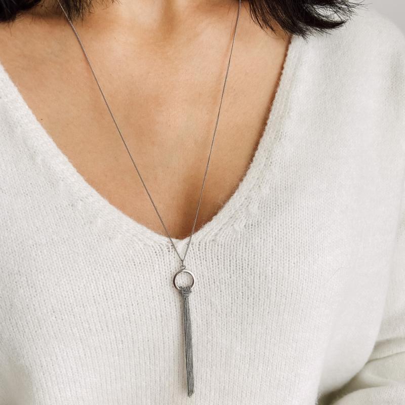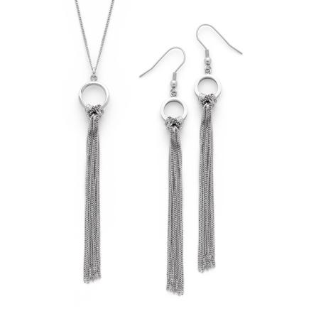 Ensemble sautoir et boucles d'oreilles acier