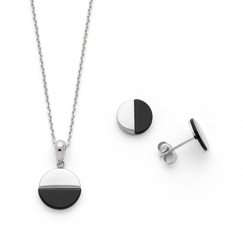 Ensemble collier et boucles d'oreilles acier avec agate noire