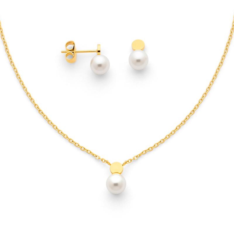 Ensemble collier et boucles d'oreilles acier doré avec verre nacré