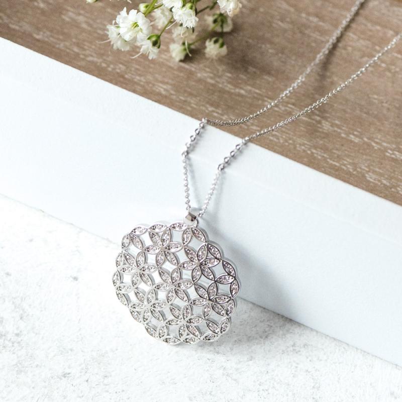 Sautoir plaqué argent avec zirconias réglable de 70 à 75 cm