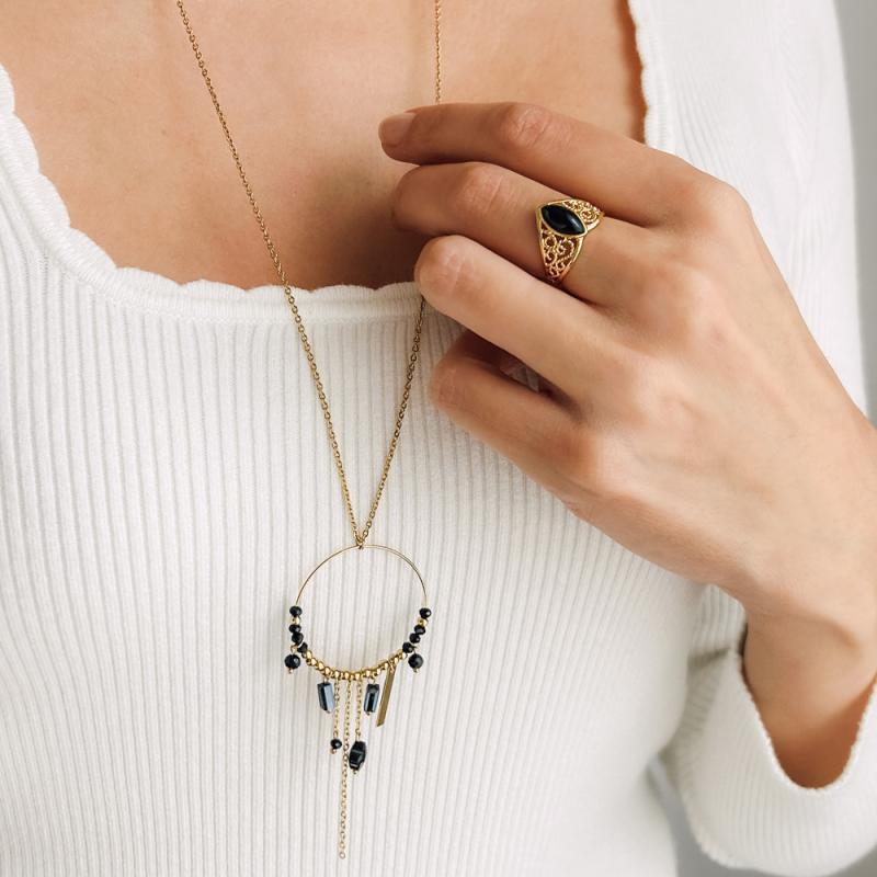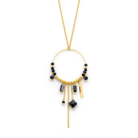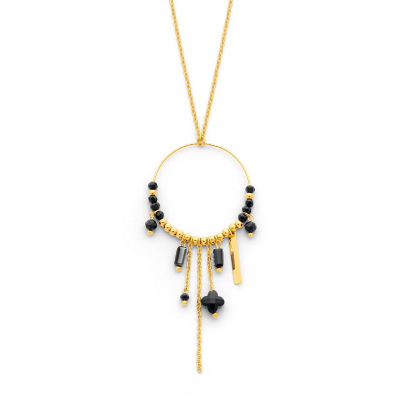 Sautoir acier doré avec miyuki et cristal réglable de 70 à 75 cm