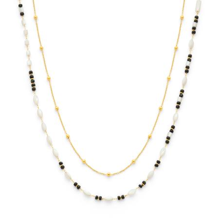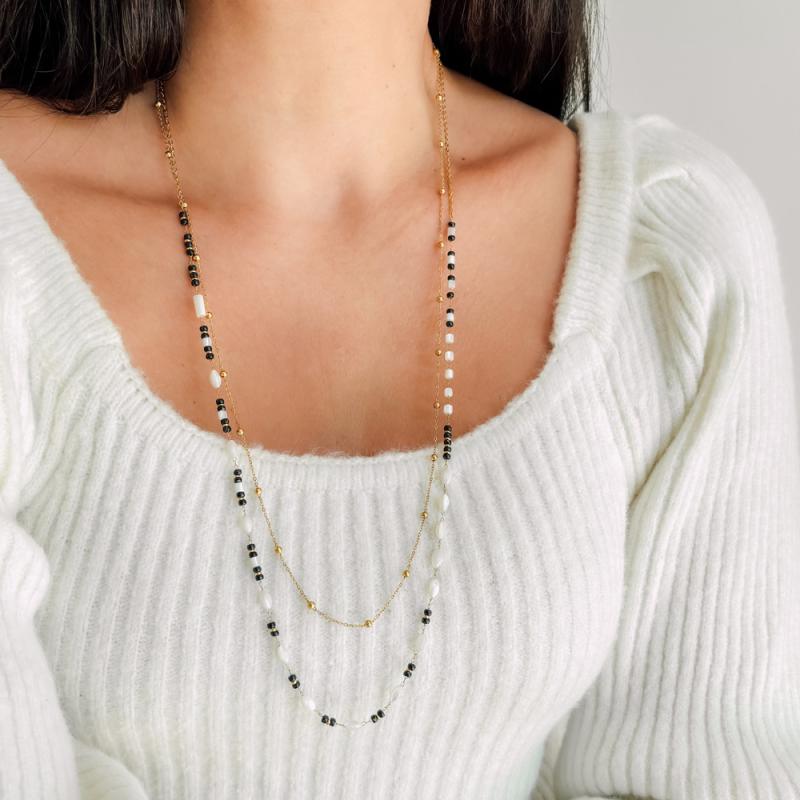 Sautoir double acier doré avec nacre et miyuki réglable de 70 à 75 cm